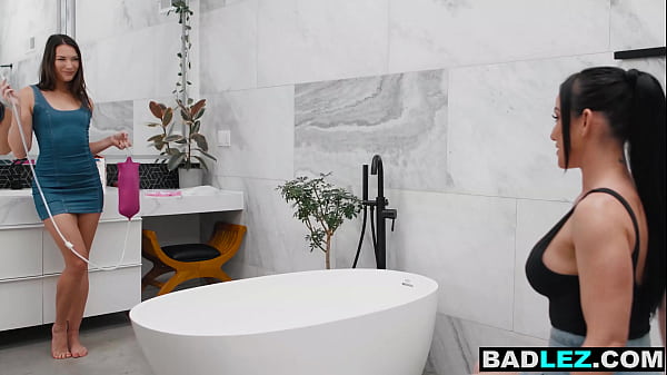 Chicas enemas toman un baño lechoso juntas 6 min